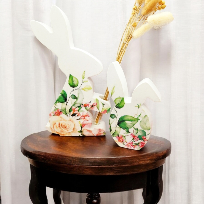 Das blumige Motiv verleiht diesem Hasen eine fröhliche Note und macht ihn zum Blickfang auf Ihrem Ostertisch oder in Ihrem Wohnraum.