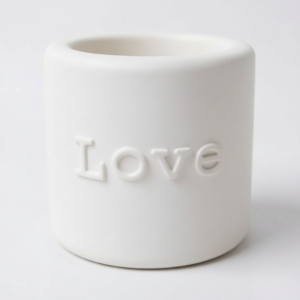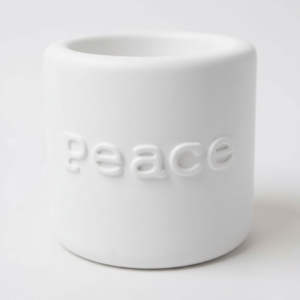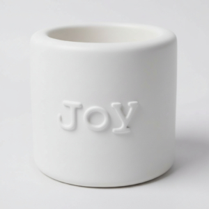 Die Kerzenhalter mit Schriftzug Joy, Love, Peace und Hope verbinden reduzierte Formensprache mit klarer Botschaft.